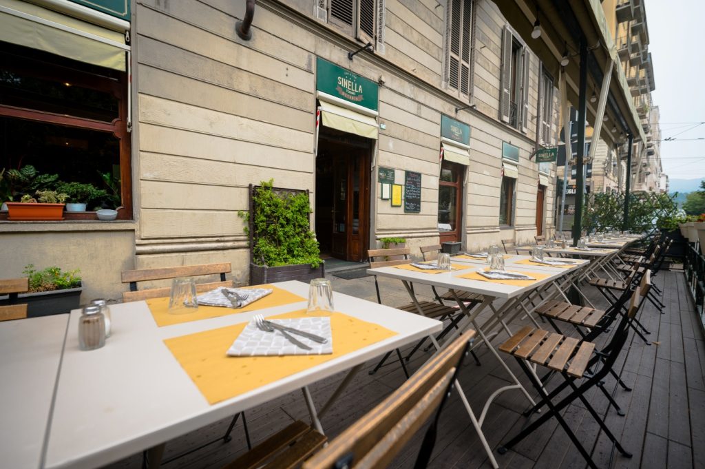 Fresco ogni giorno, il pesce è il protagonista indiscusso di piatti preparati secondo ricette che ne esaltano il sapore e ti conquistano, sin dal primo assaggio. Nell’Osteria Sinella entri anche per assaporare la cucina tipica piemontese a Torino, le cui specialità sono davvero tante e spaziano dal fritto misto alla bagna cauda. I menu del ristorante di Torino sono tematici stagionali. All’interno, l’ambiente è climatizzato, all’esterno, ti aspetta un suggestivo dehors.